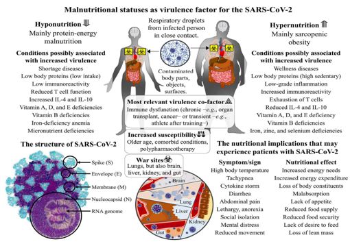 28. Briguglio M, Pregliasco FE, Lombardi G, et al. The Malnutritional Status of the Host as a Virulence Factor for New Coronavirus SARS-CoV-2. Front Med (Lausanne). 2020; 7: 146.