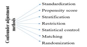 Methods: In this narrative review study, all statistical methods for adjusting confounding variable such as standardization, propensity score, stratification, restriction, statistical model for control, matching, randomization were reviewed.